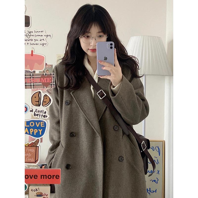 毛呢外套女小个子2024新款秋冬季高级感韩系加厚正肩羊绒呢子大衣