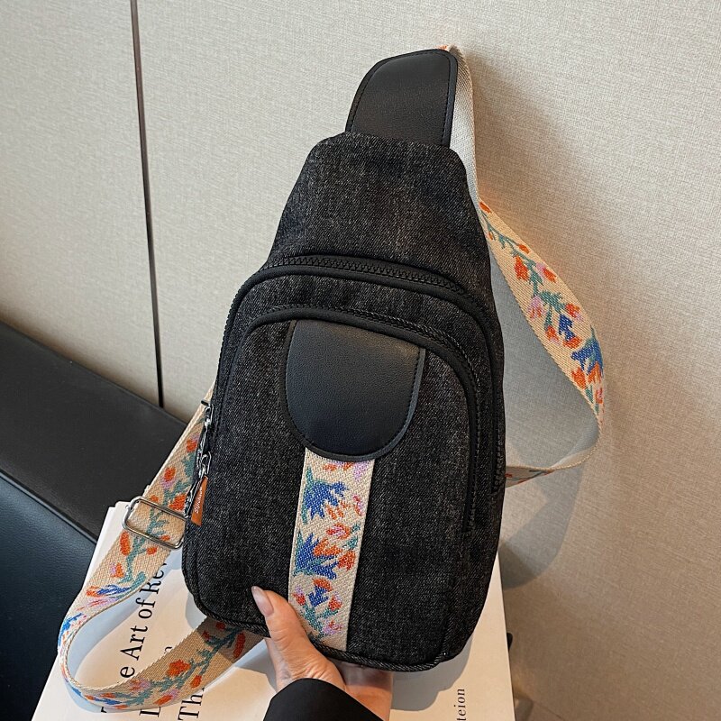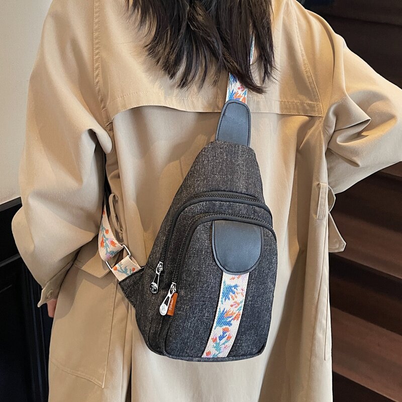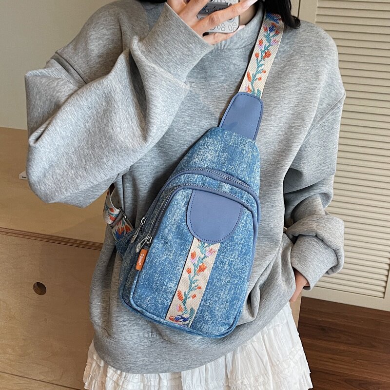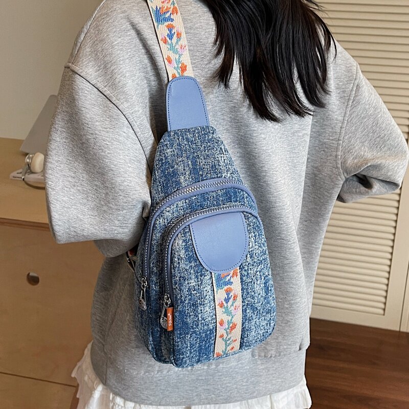 小众设计牛仔布大容量胸包通勤包