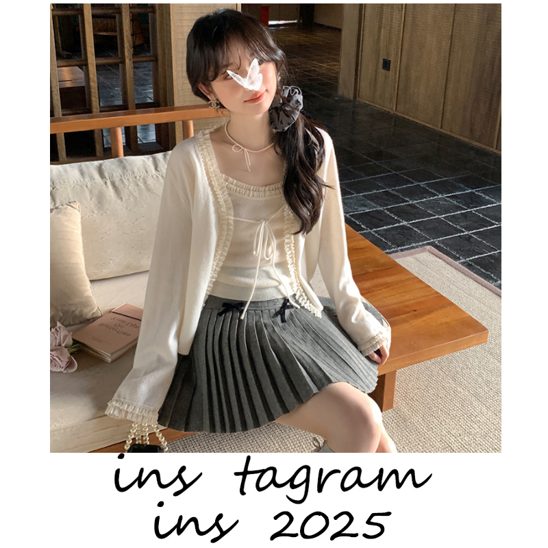 春风拂绿 温柔蕾丝花边系带开衫+吊带女春两件套上衣