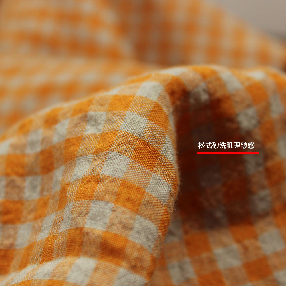 瓦娜家原创肌理感色织纯亚麻格子布料旗袍连衣裙衬衣服装面料橘色