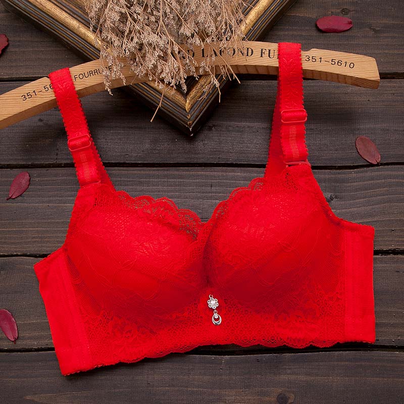 无钢圈超厚胸罩小胸A杯加厚6cm女士内衣蕾丝性感聚拢调整型文胸