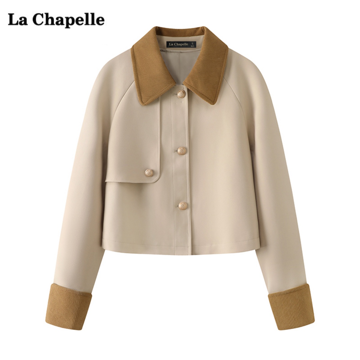 拉夏贝尔/La Chapelle时尚翻领短款外套女春季新款百搭小个子上衣