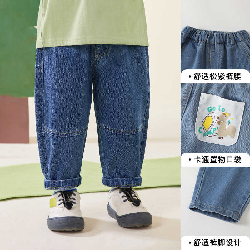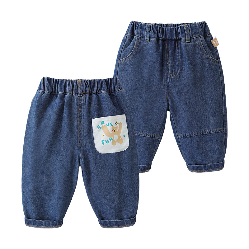 咔咔熊猫男童裤子春秋婴儿衣服韩版牛仔春装儿童女宝宝小童休闲裤
