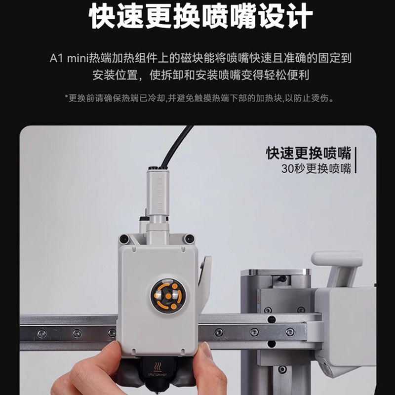 3D打印机拓T竹A1/A1 mini硬化钢喷嘴打印头热端组件硅胶套合成石散热风扇挤出机齿轮