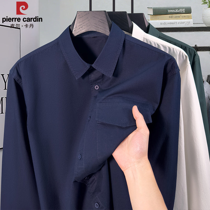 皮尔卡丹全棉衬衫男长袖高端品牌
