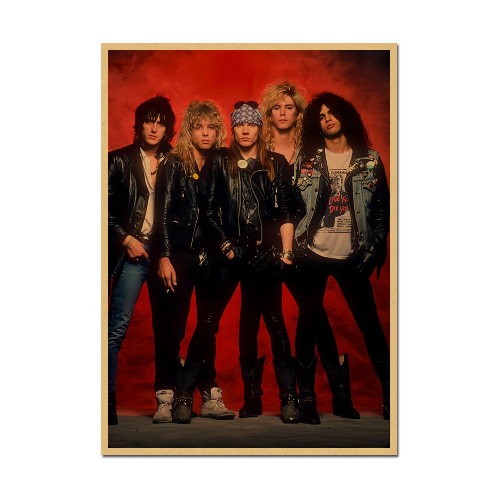 摇滚乐队音乐海报 复古怀旧牛皮纸画 房间卧室墙面布置装饰墙贴画