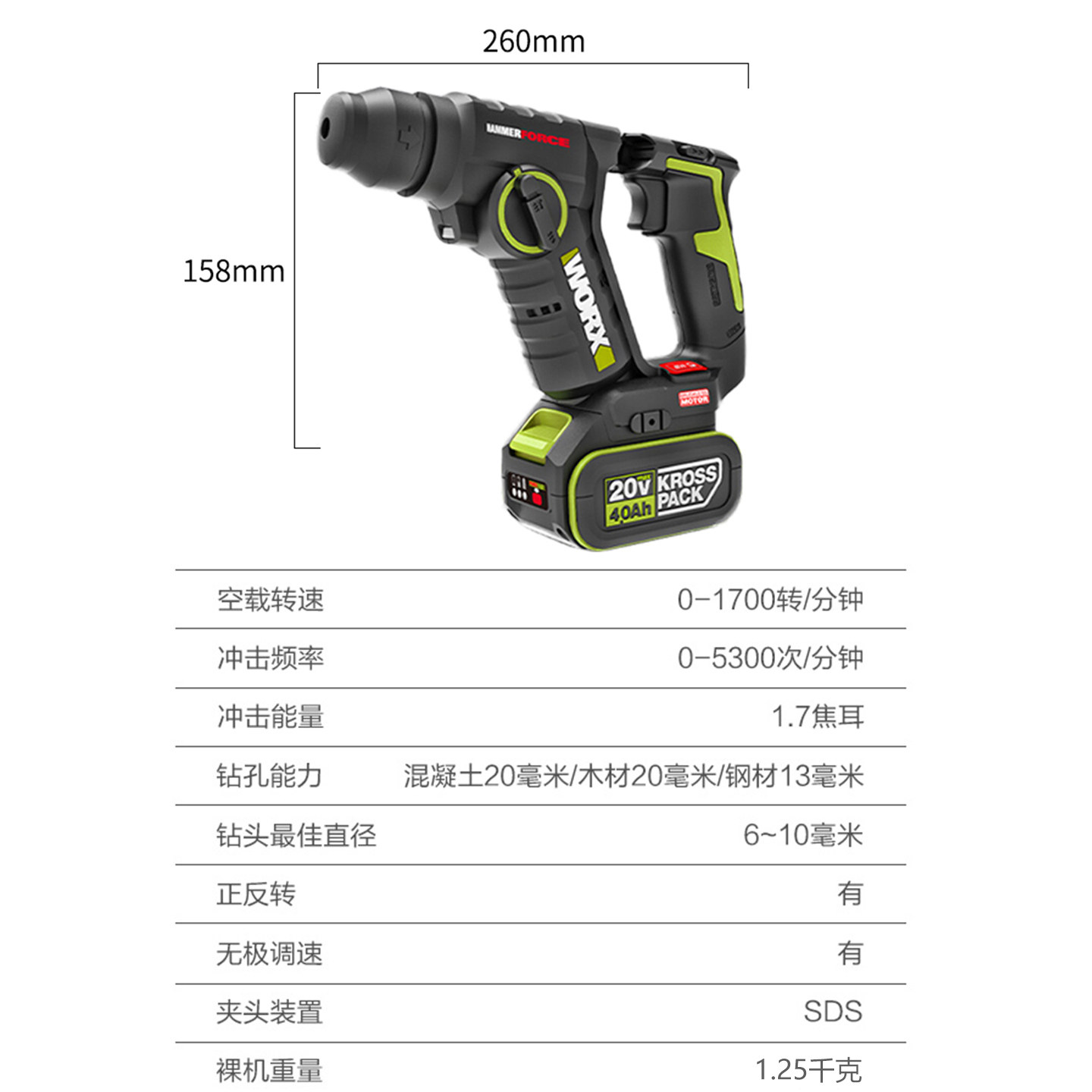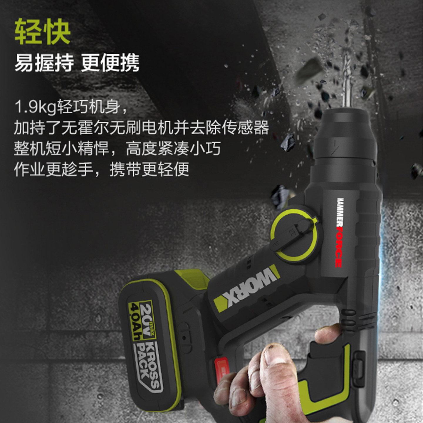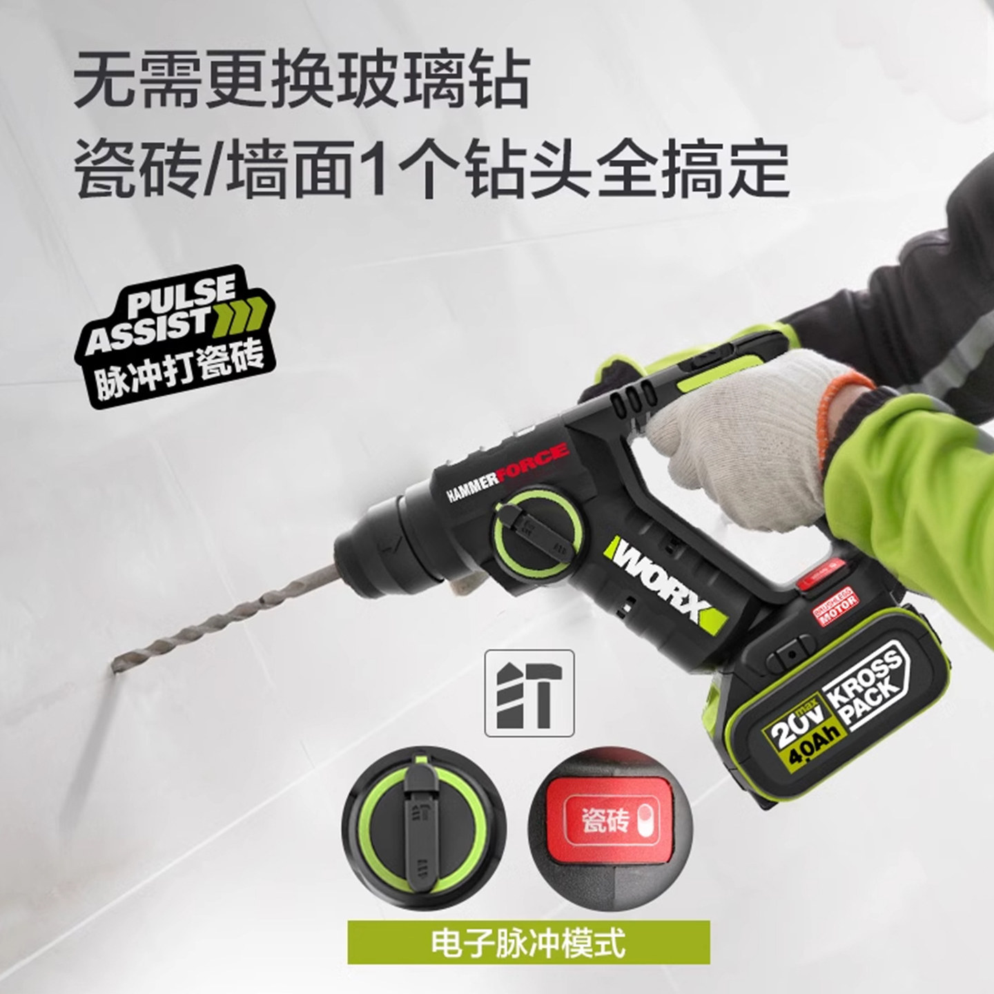 威克士20V锂电无刷轻型电锤WU380S家用多功能电钻脉冲打瓷冲击钻