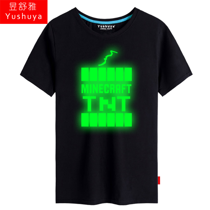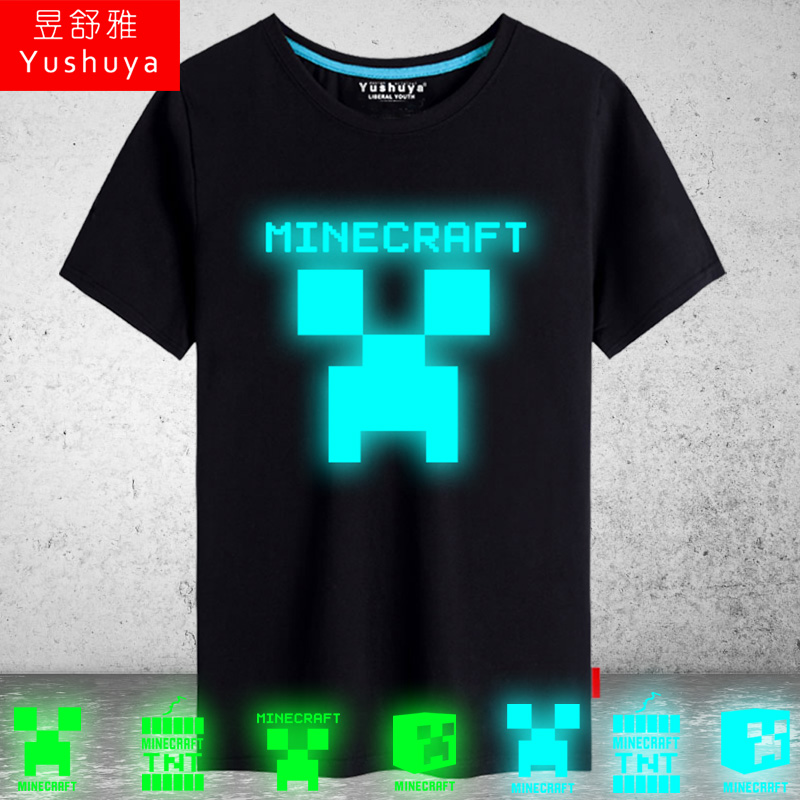 我的世界苦力怕游戏周边反夜光短袖t恤衫男女纯棉半截袖荧光衣服