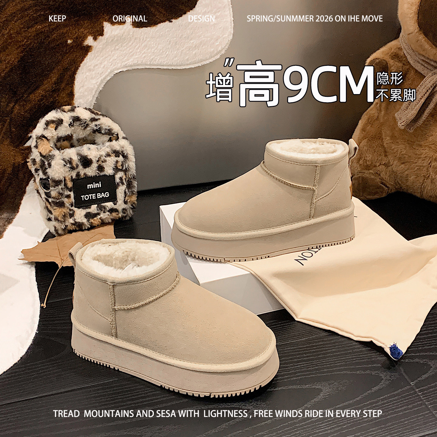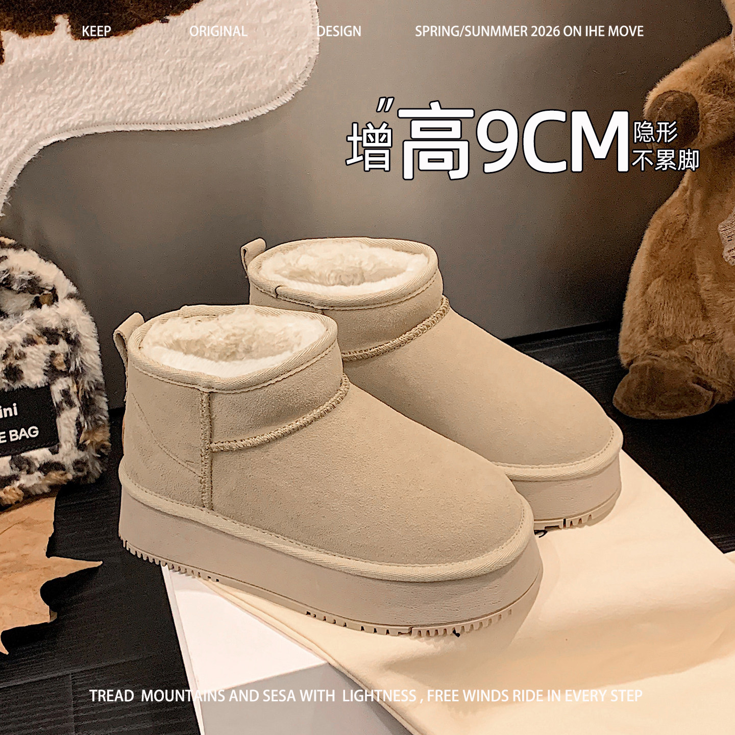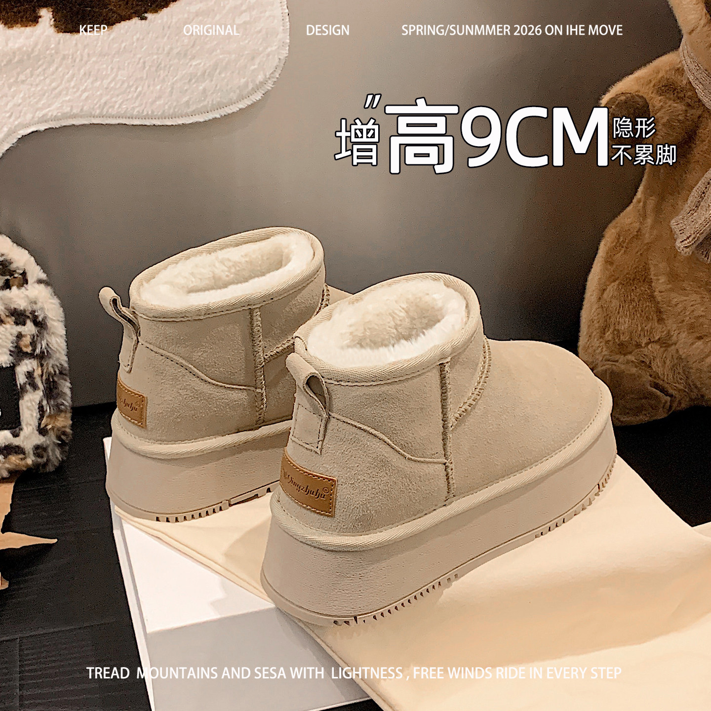 雪地靴女款冬季厚底内增高超好看低筒短靴小个子显高超好看冬棉靴