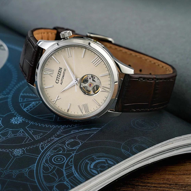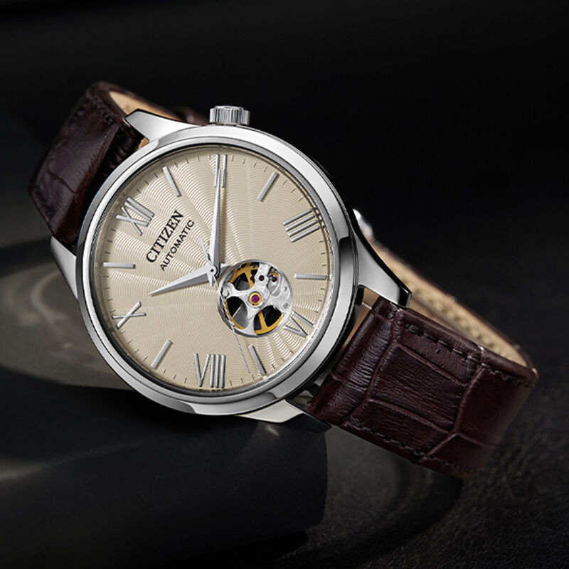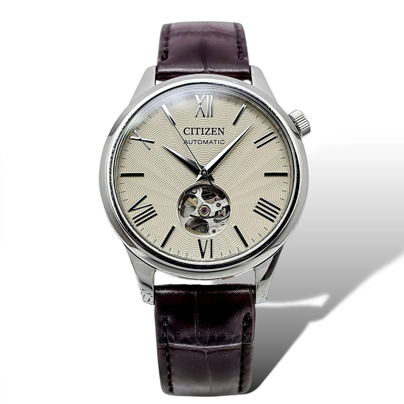 西铁城机械男士手表镂空表盘商务休闲皮带时尚防水腕表NH9130-17A
