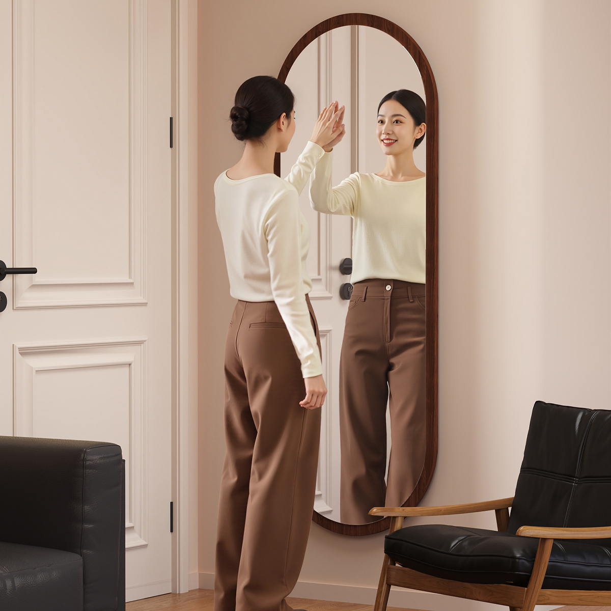 中古风椭圆全身镜异形壁挂穿衣镜