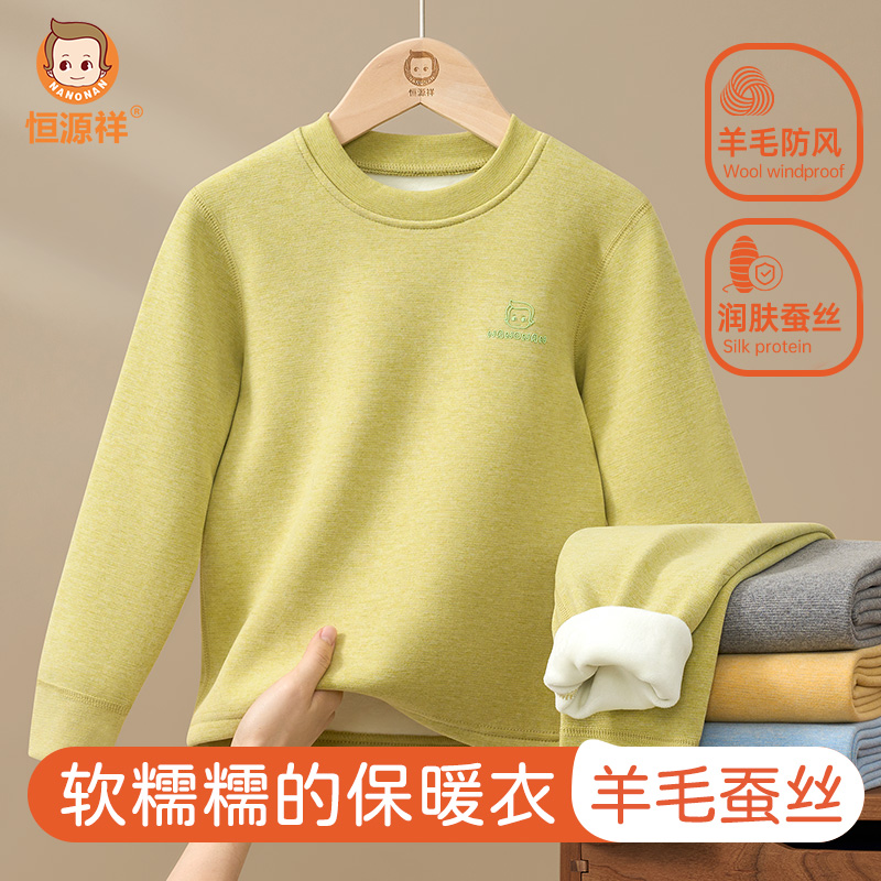 恒源祥儿童保暖内衣男童加绒加厚秋衣秋裤中大童女孩羊毛蚕丝套装