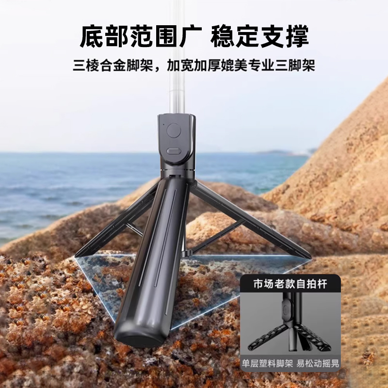 2024新款自拍杆直播拍摄迷你手持一体式防抖三脚架拍照神器便携式落地支架补光蓝牙遥控美颜自照手机专用支架