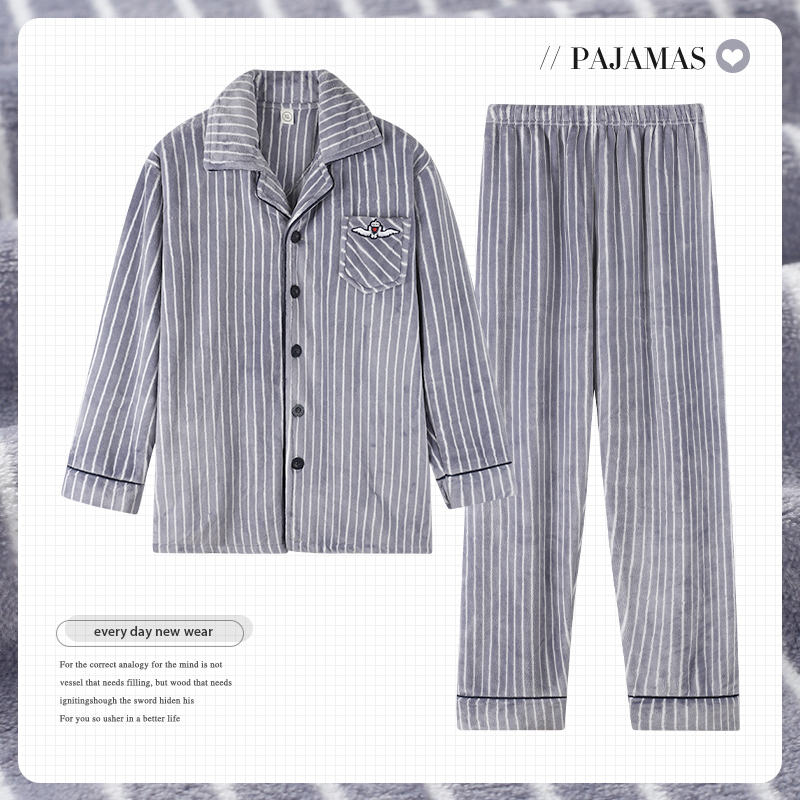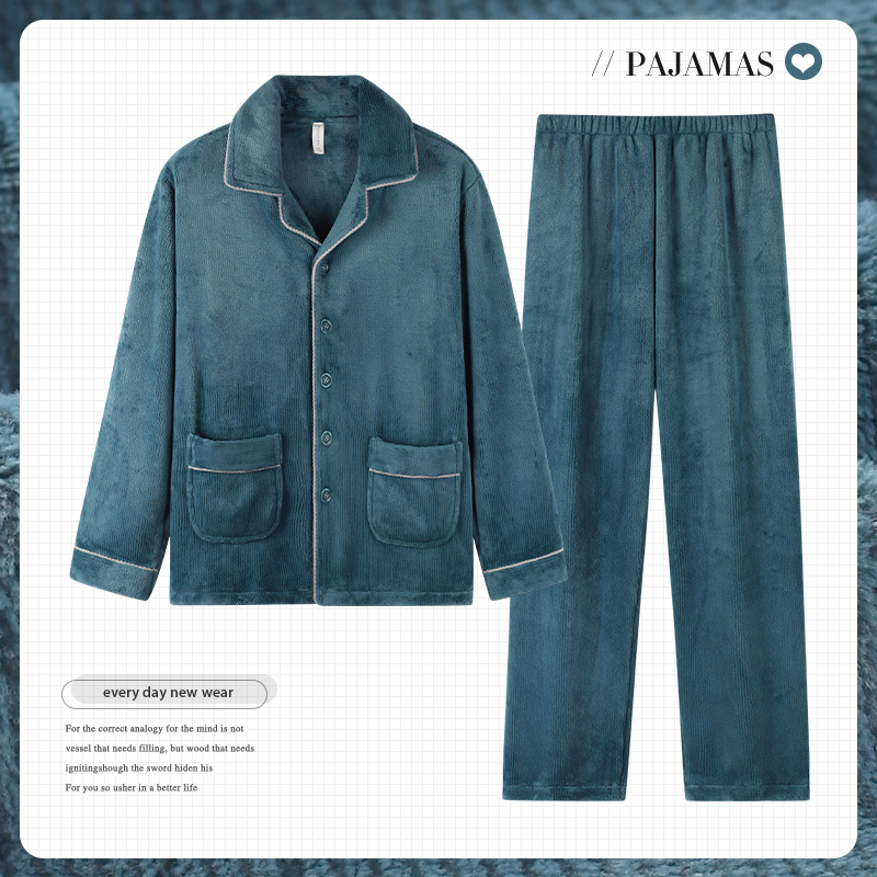 秋冬季睡衣男士珊瑚绒加绒加厚中年男款开衫长袖加大码家居服套装