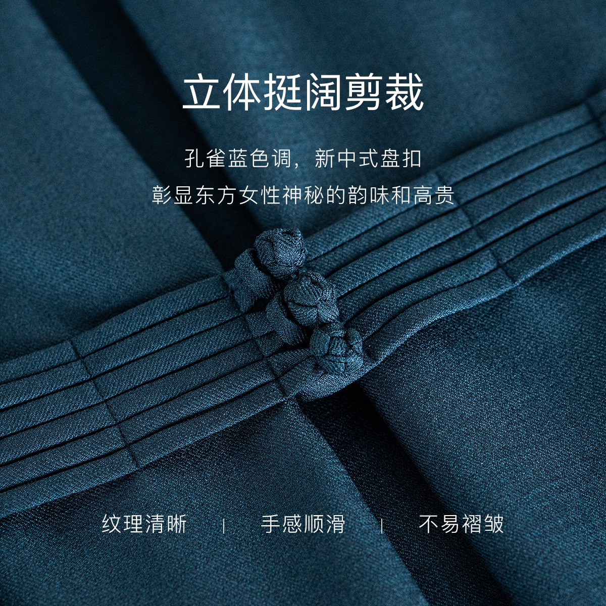 罗衣气质孔雀蓝盘扣收腰连衣裙