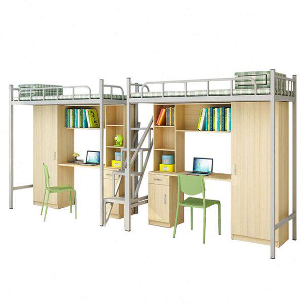 员工学生铁床宿舍上下铺木床公寓衣柜多功能双层床书架组合双人床