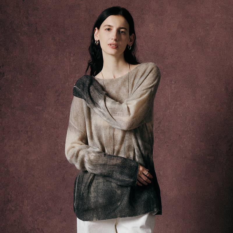 帕罗长袖宽松圆领舒适纯羊绒衫女