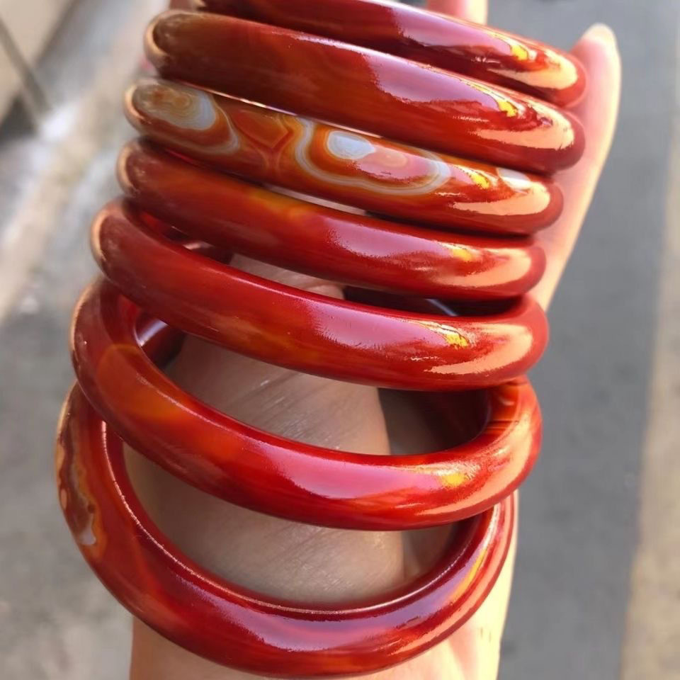 战国红玛瑙手镯天然缠丝玛瑙玉镯子女款玉石首饰品直播货源批发