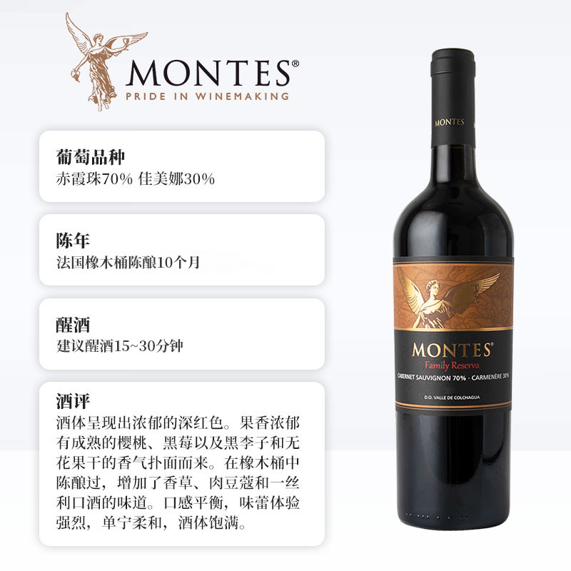 蒙特斯家族珍藏赤霞珠红葡萄酒750ml智利原瓶进口红酒婚礼宴请