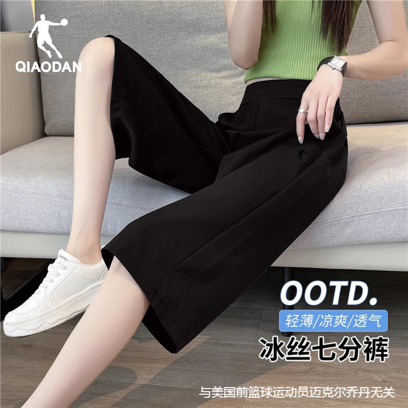 乔丹七分裤女2025新款夏季女士透气运动裤旗舰店速干冰丝宽松女裤