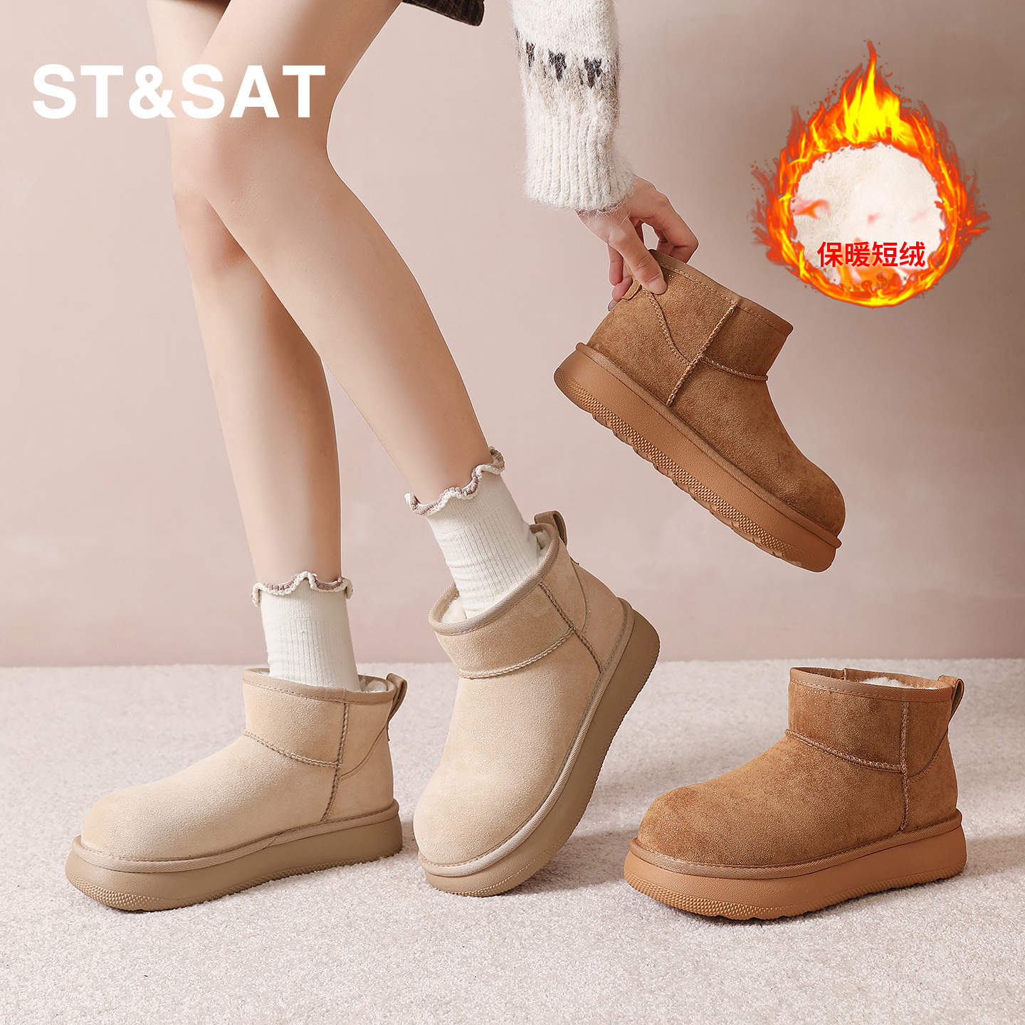 星期六雪地靴女冬季2025新款厚底加绒加厚毛毛棉鞋女复古中筒短靴