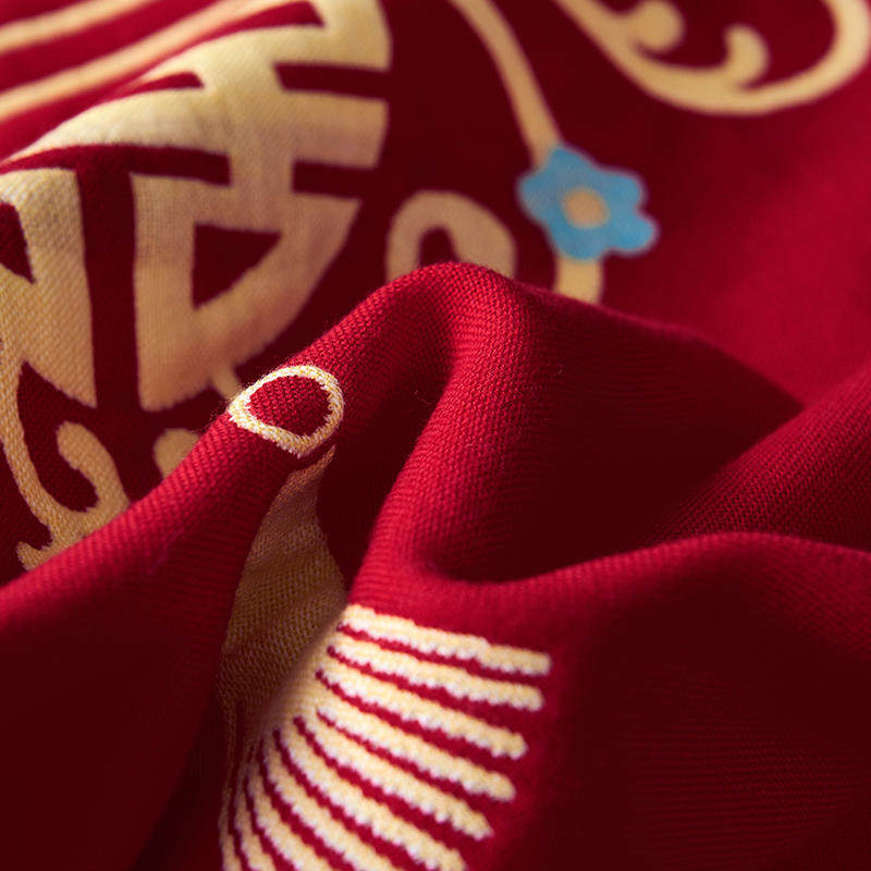 大红婚庆全棉枕巾 一对装情侣新结婚盖巾纯棉纱布枕头巾加大加厚