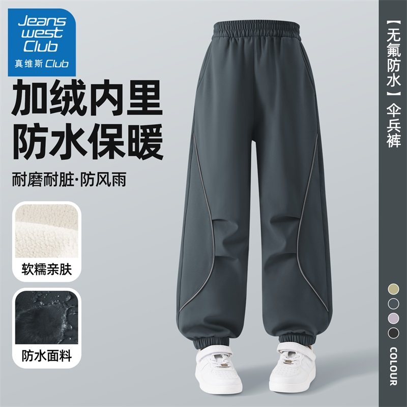 真维斯club女童运动裤秋冬2025新款儿童加绒裤子女孩保暖防水长裤