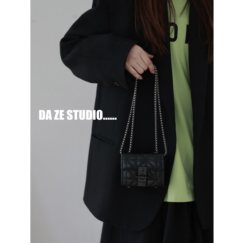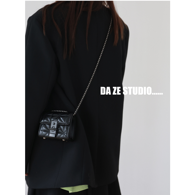 质感菱格链条黑色迷你包