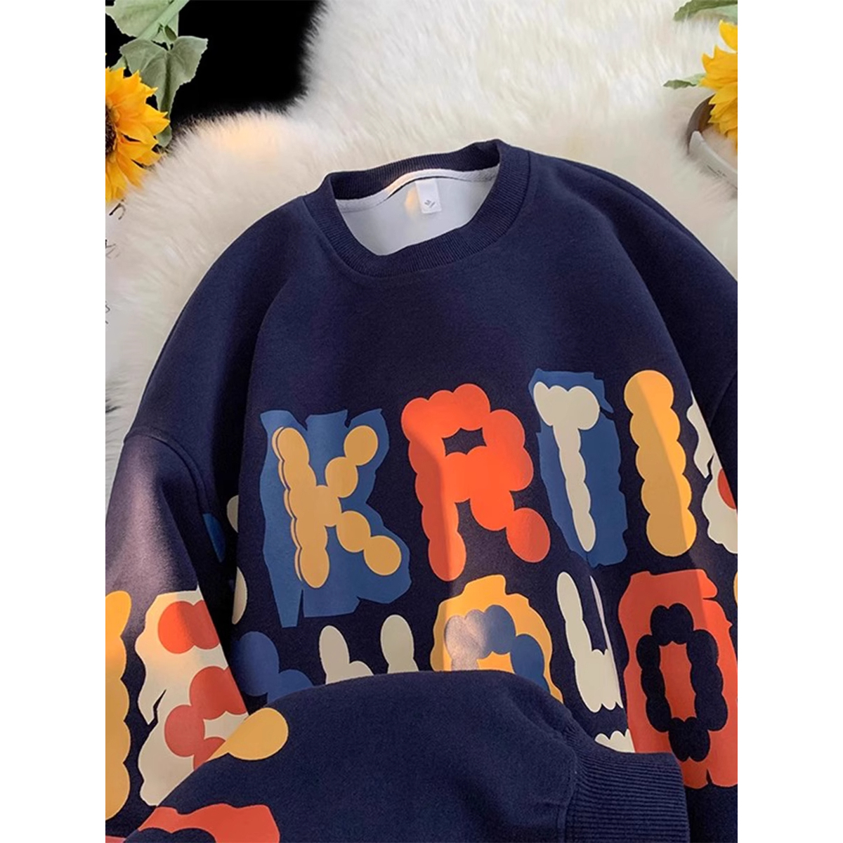 大码300斤趣味字母撞色圆领卫衣男秋冬慵懒宽松美式重磅百搭上衣2