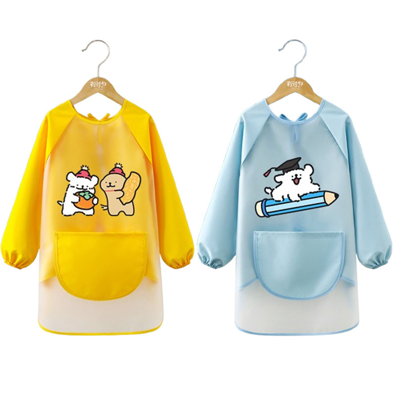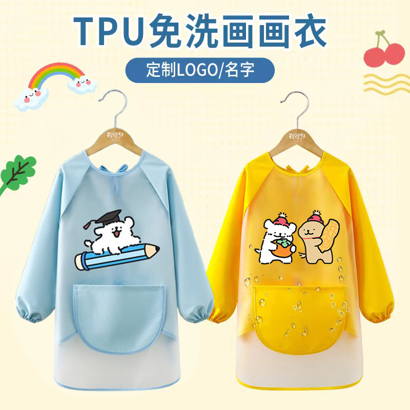 儿童画画衣服罩衣防水防脏幼儿园定制美术围裙反穿衣TPU免洗长袖
