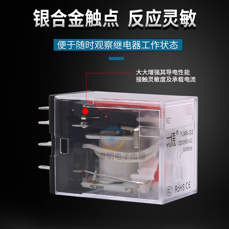 一佳14脚4路MY4NJ电磁继电器220V交流DC24V小型12V直流电YJ4N-GS