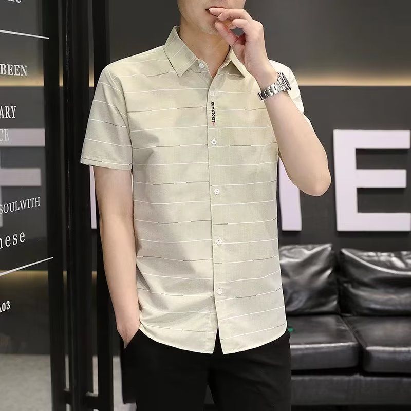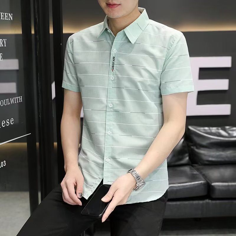 夏季新款短袖衬衫男士韩版修身潮流衬衣男装休闲帅气上衣