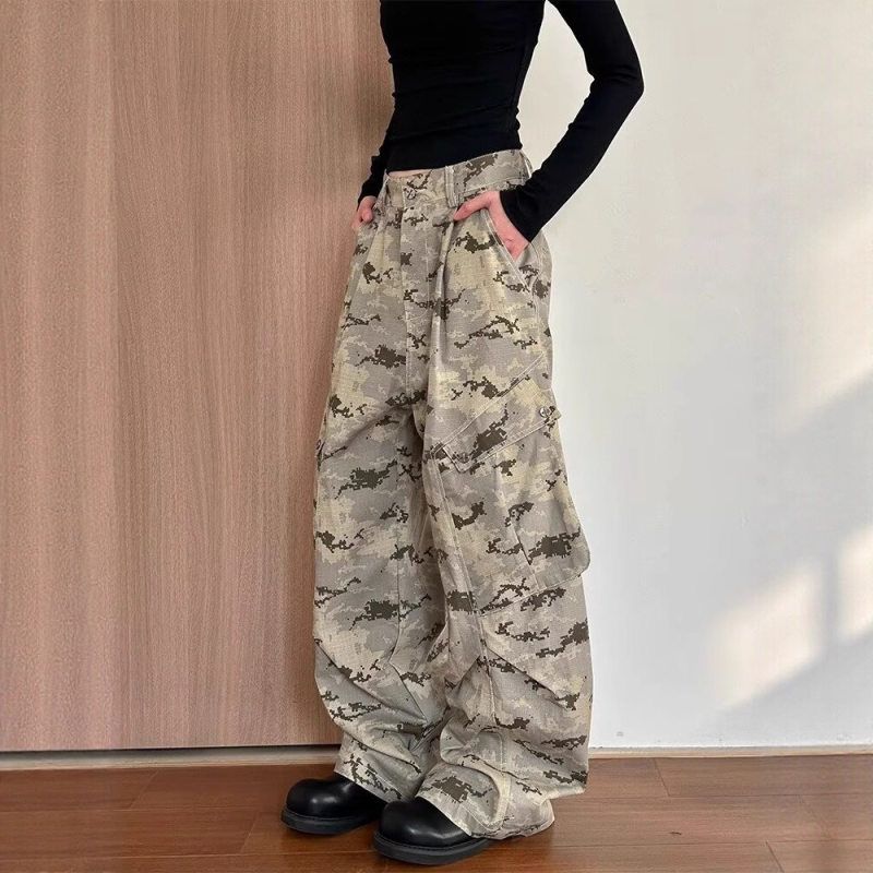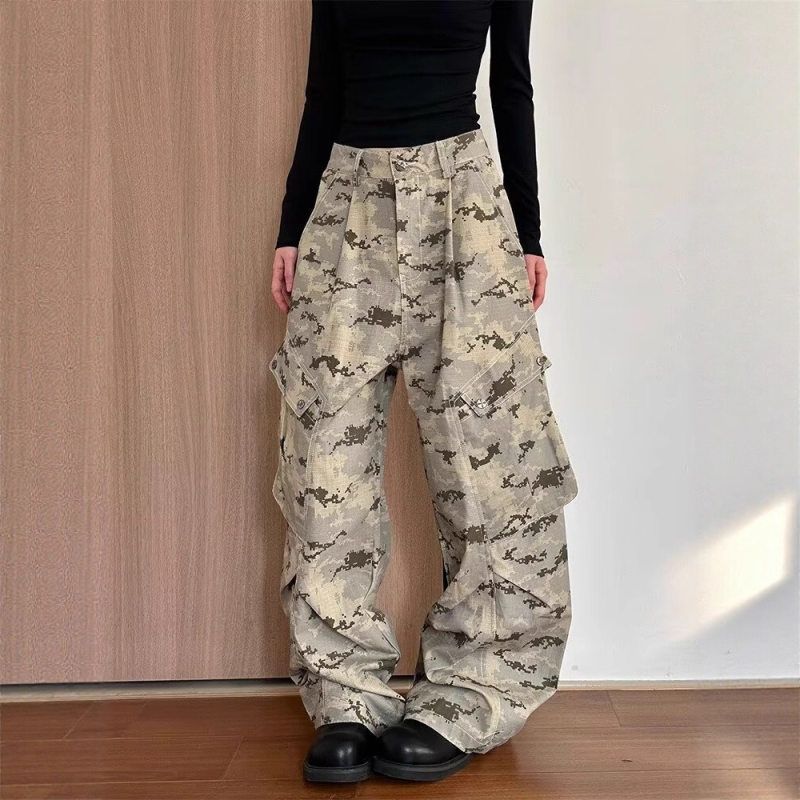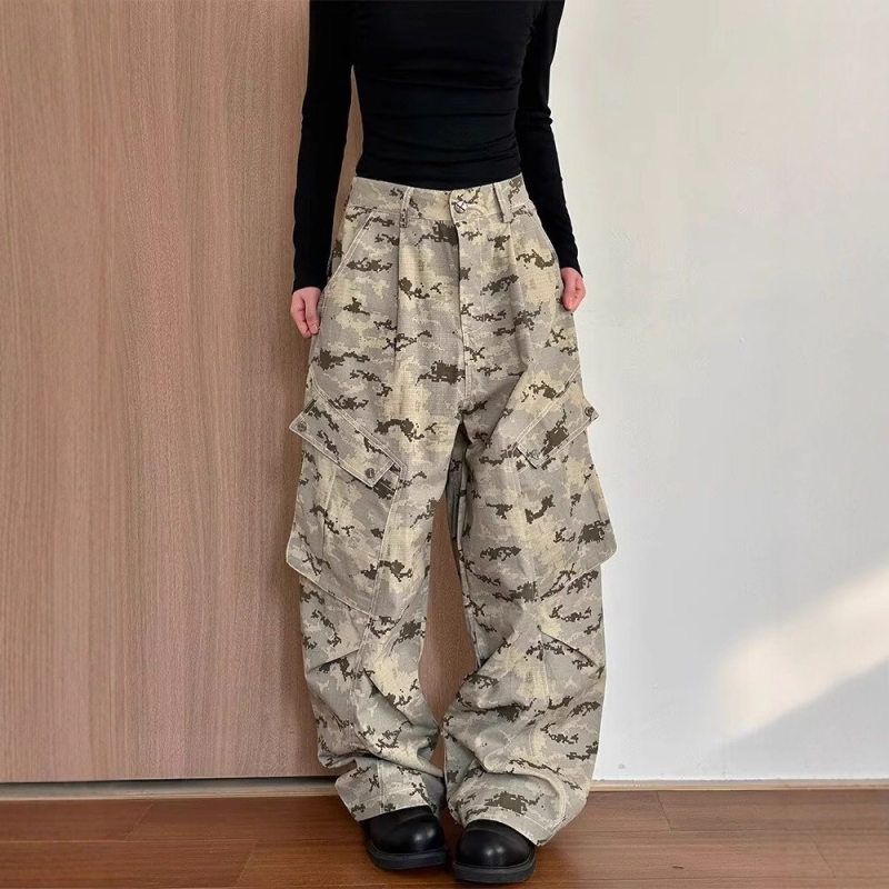 工装直筒宽松男彩女款多长裤口袋迷街头迷彩长裤高街欧美青年休闲