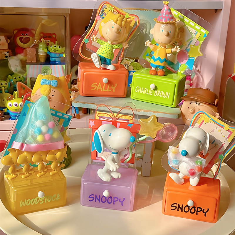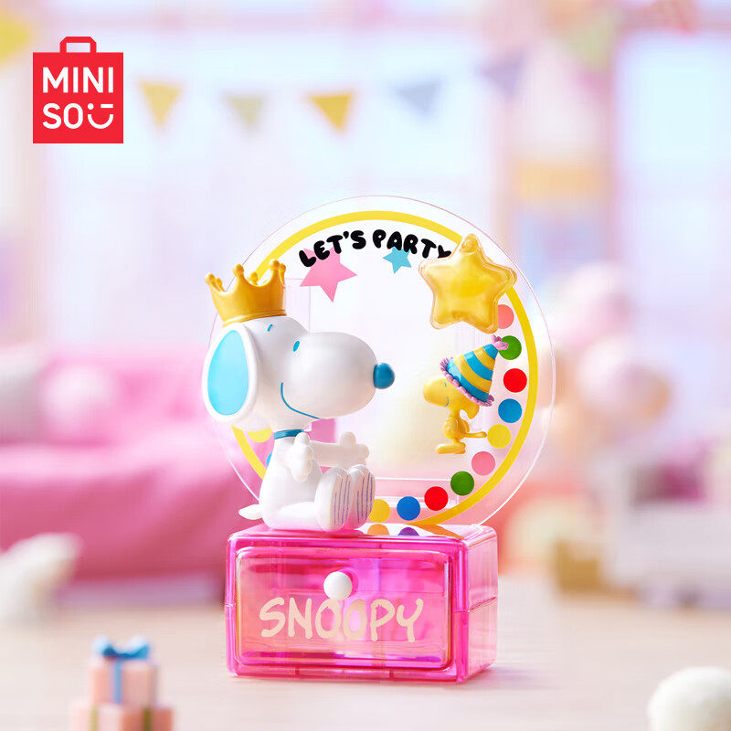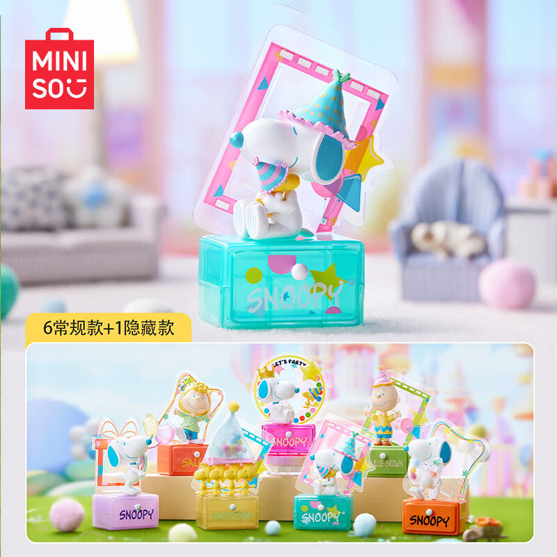 正版名创优品史努比派对主题盲盒手办玩具可爱桌面摆件生日礼物