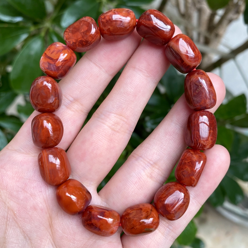 天然凉山保山南红玛瑙南红玉柿子红火焰纹随型原石手链手串男女款