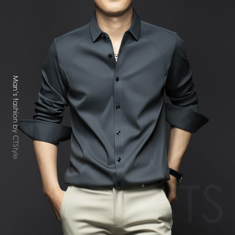 春秋季男士商务休闲长袖衬衫免烫丝光棉简约衬衣2025男装新款上衣