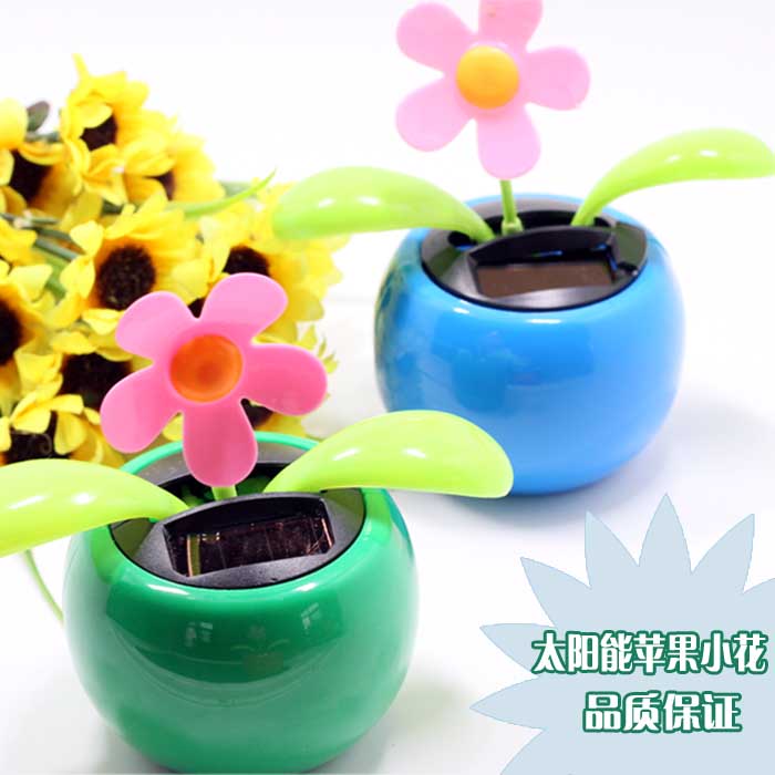 创意摇头汽车内摆件太阳能苹果花车饰车上车载保平安装饰品太阳花