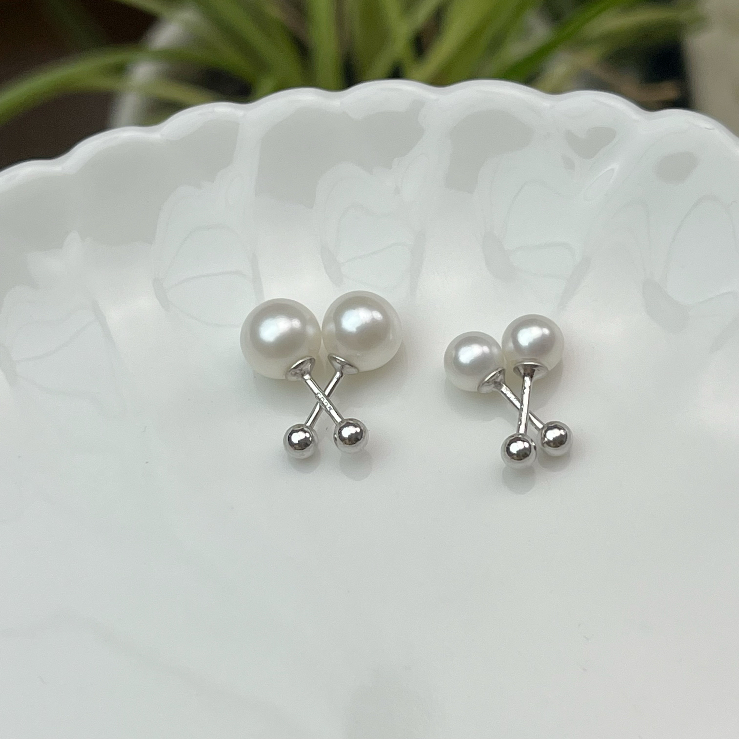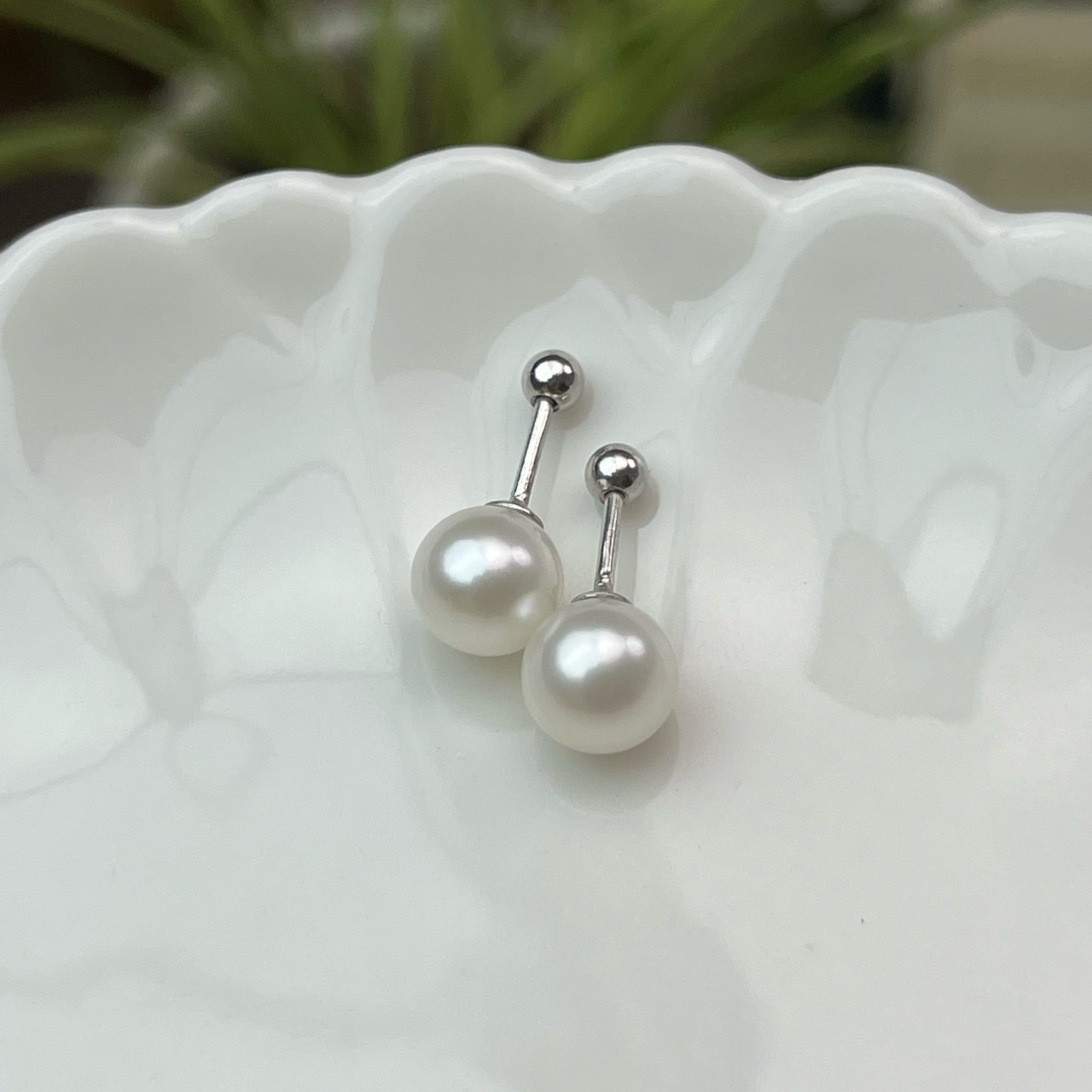 天然无核淡水珍珠耳钉s925纯银螺丝拧防掉两戴耳环洗澡睡觉免摘