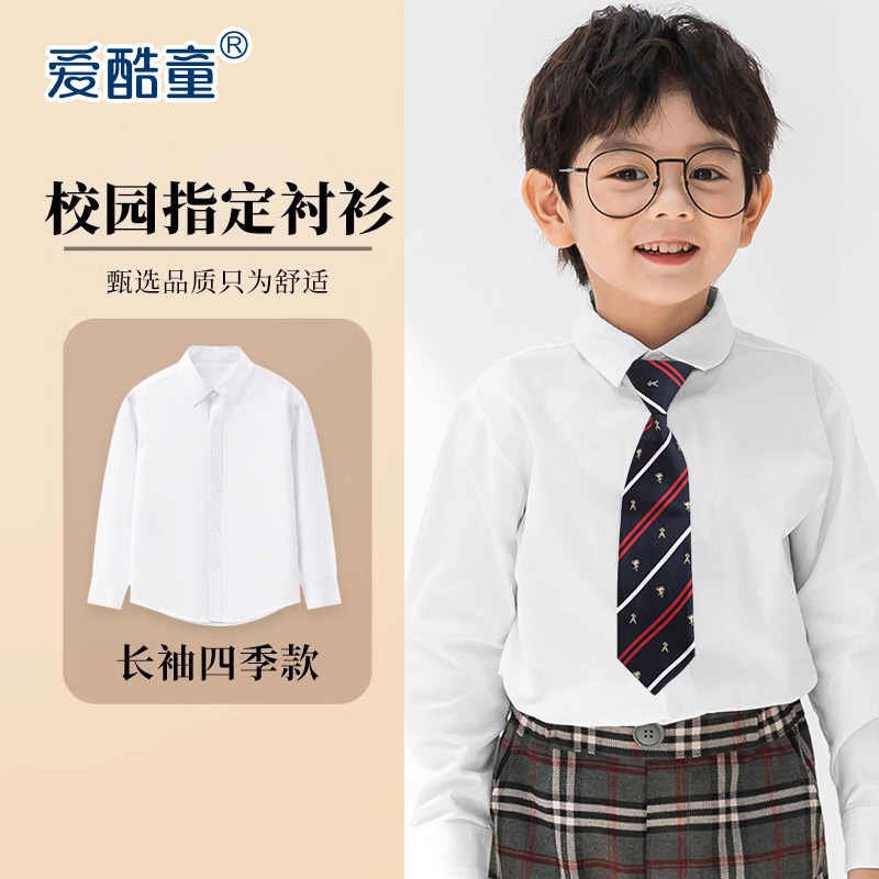 小学生校服表演儿童白衬衫长袖棉女童礼服寸衫男童短袖白色衬衣