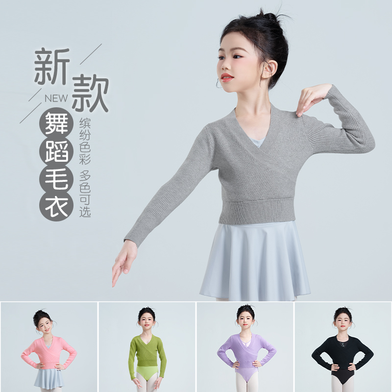 儿童舞蹈毛衣秋冬季女童芭蕾舞针织披肩长袖舞蹈服练功服外搭外套