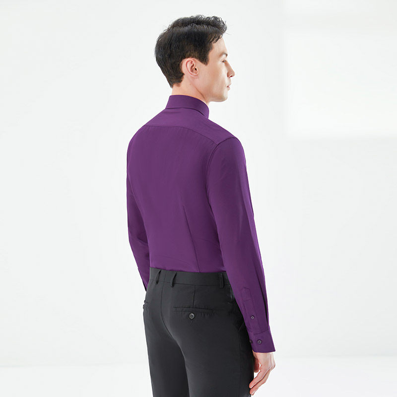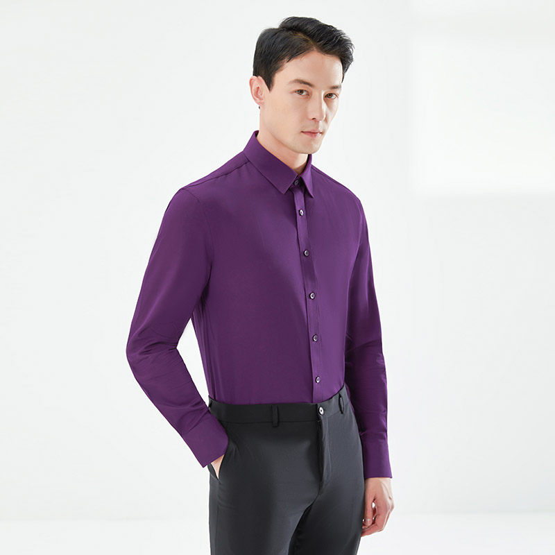 乔治白【竹纤维】春季男士长袖衬衫休闲婚庆衬衣微弹修身纯色上衣