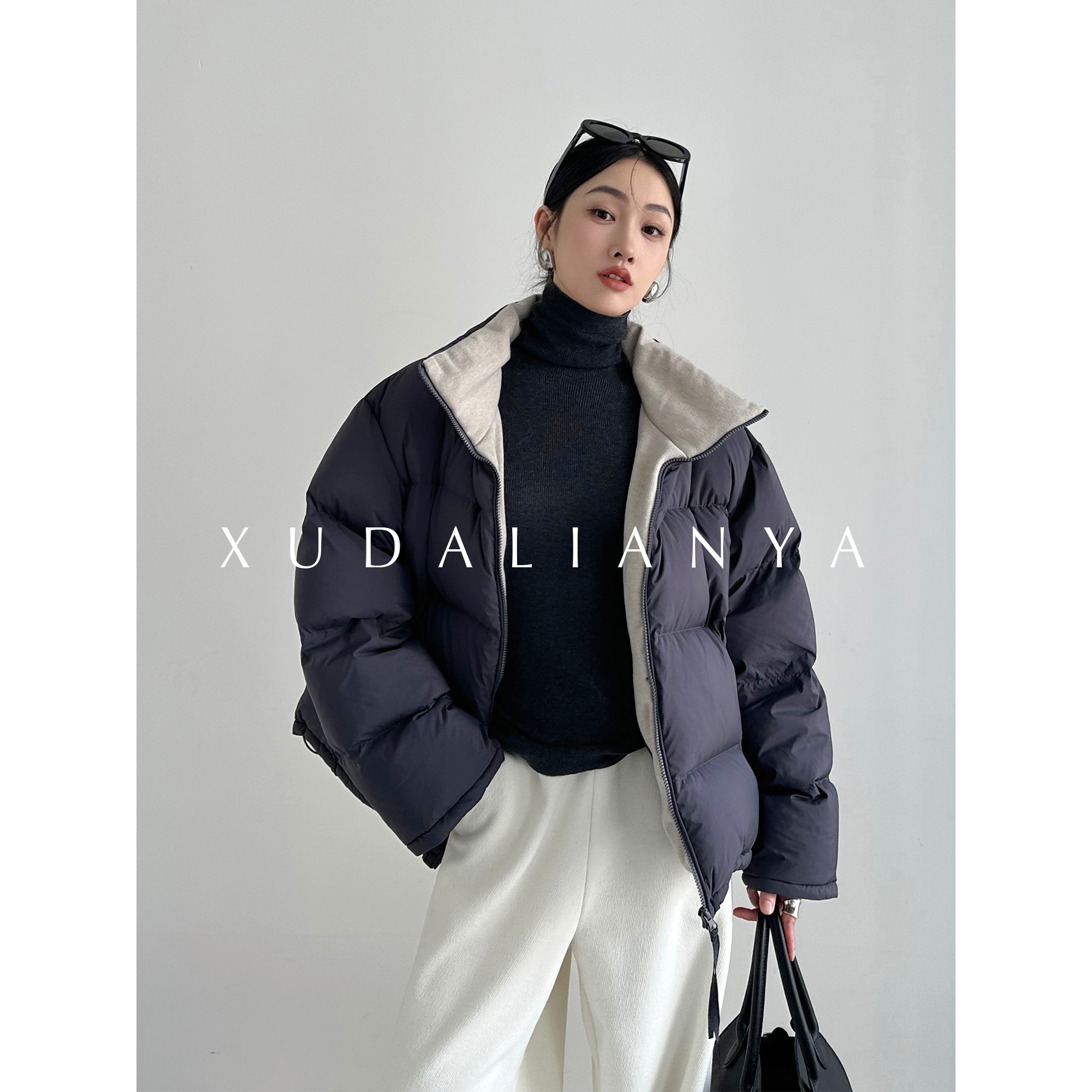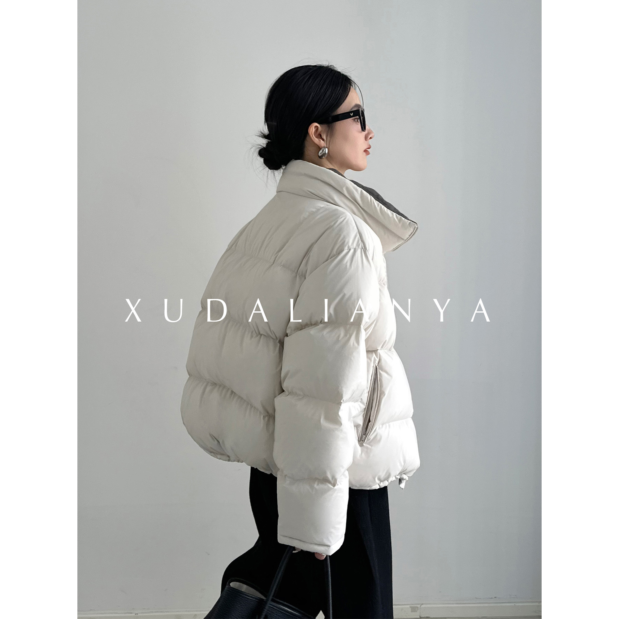 徐大脸吖定制 冬季小暖炉保暖绒子白鸭绒短外套拼色立领羽绒服女