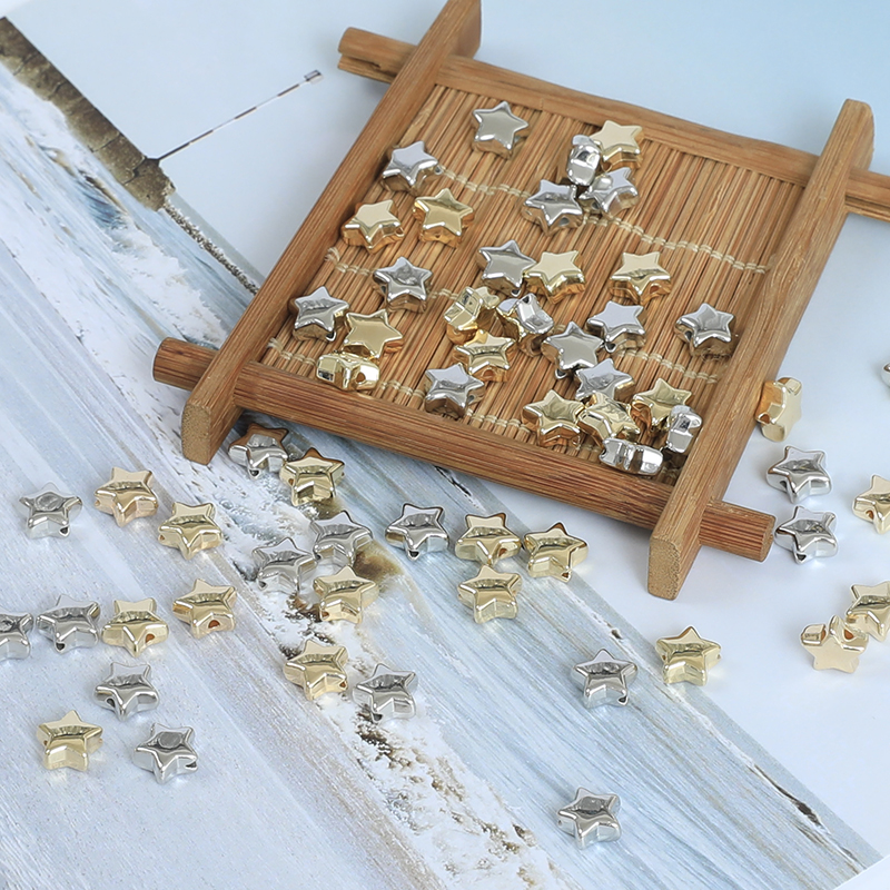 CCB电镀五角星珠子金色银色diy手工串珠手链项链散珠饰品隔珠材料