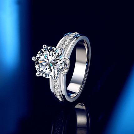 正品莫桑石钻戒女戒指纯银镀AU750白金铂金指环结婚情侣对戒许愿