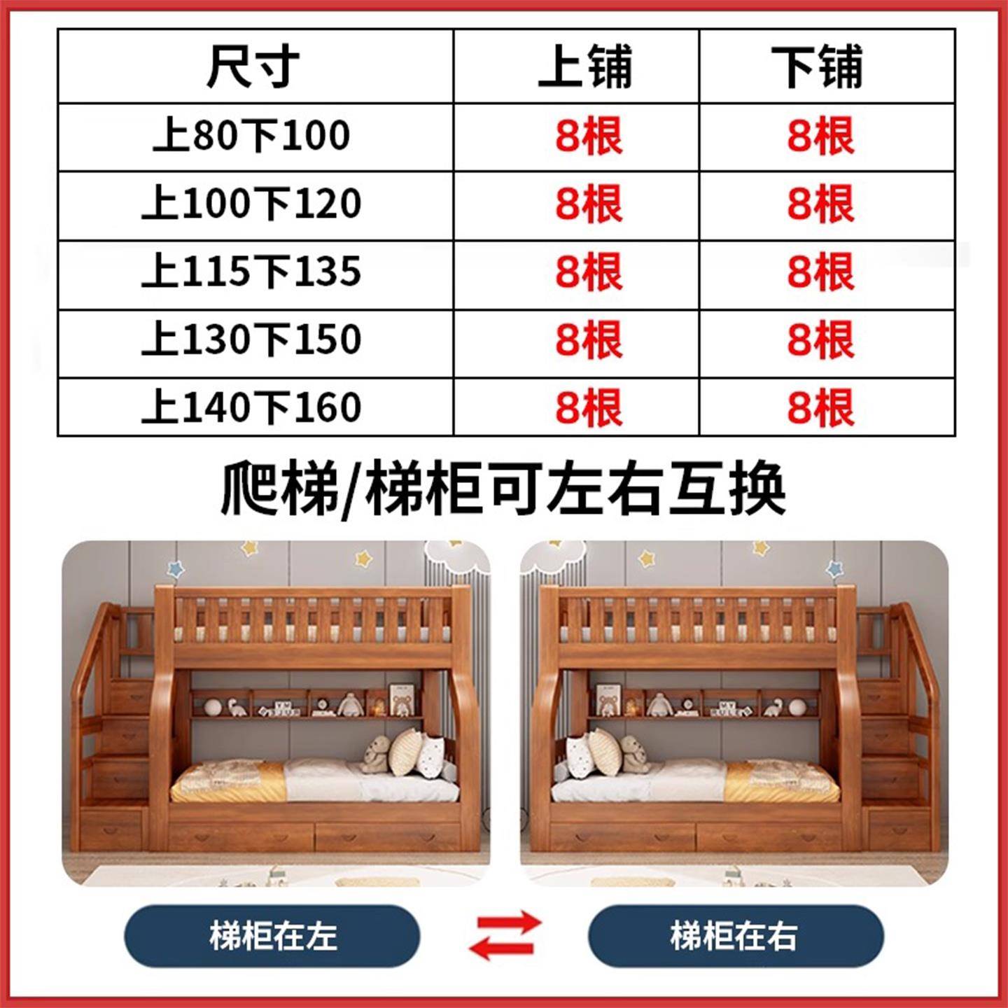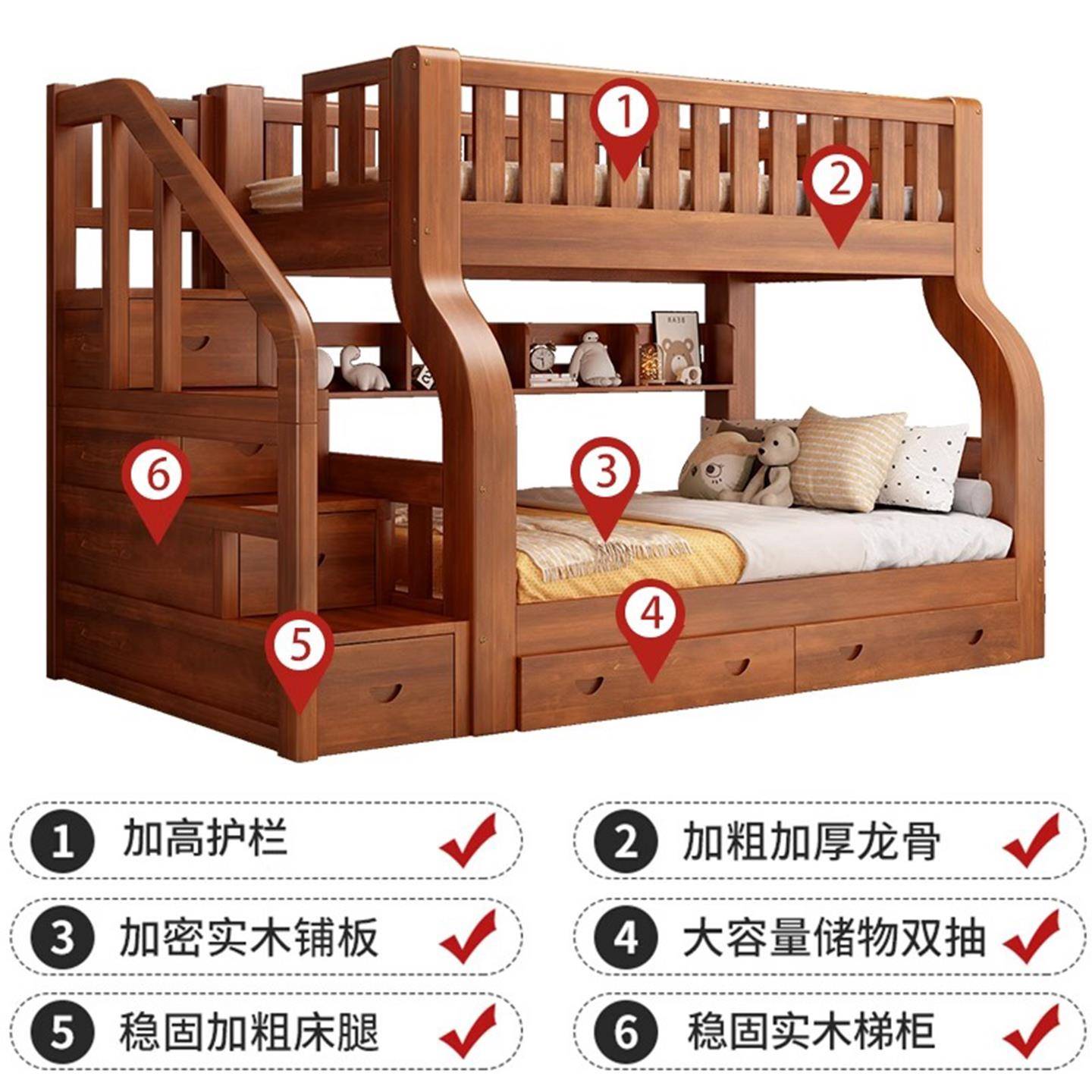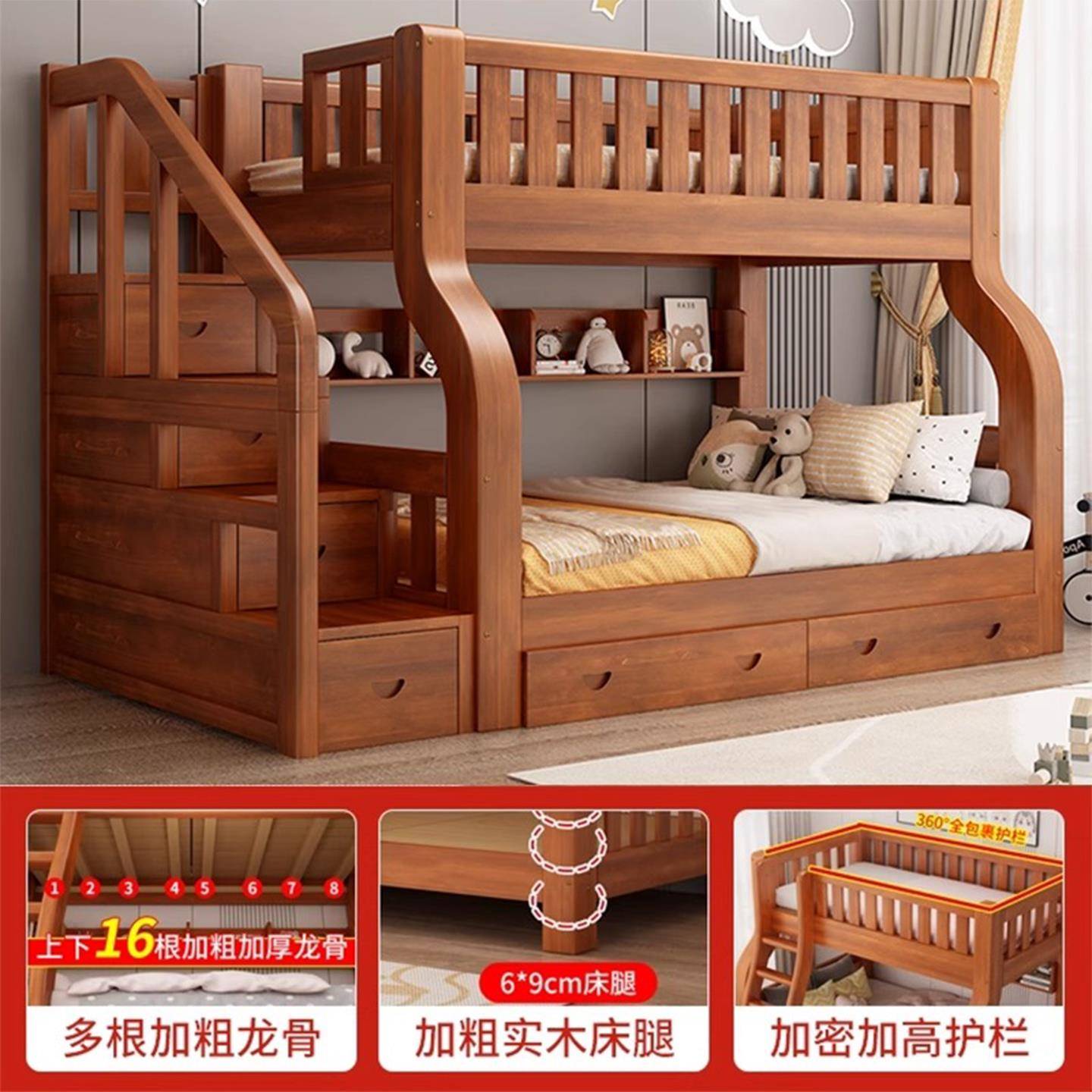 全实木子母床上下铺双层床高低床多功能组合儿童床上下床两层木床