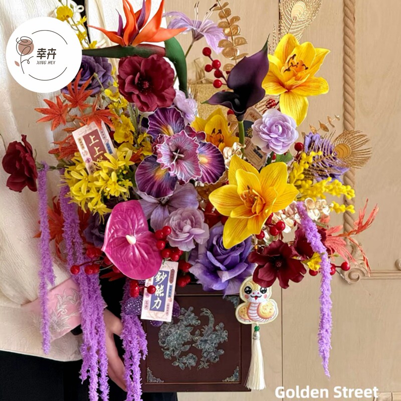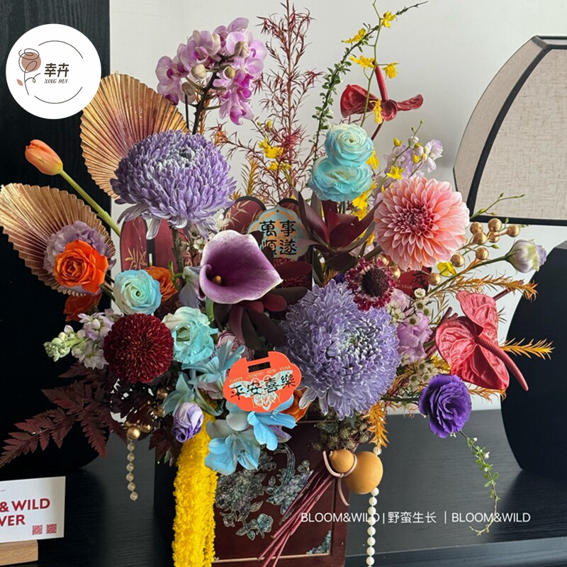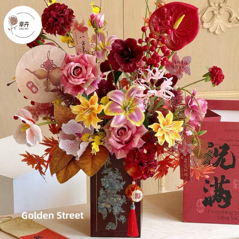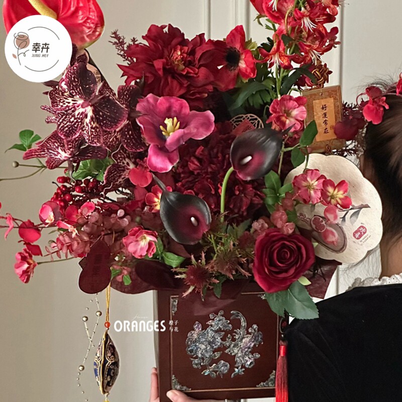 新年复古木质礼盒鲜花手提盒年宵花福桶插花桶蝴蝶兰盆栽花盒抱桶