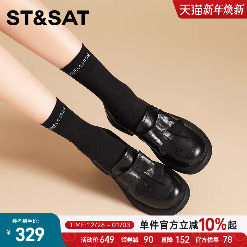 星期六女鞋新款圆头蝴蝶英伦风乐福鞋女一脚蹬复古学院单鞋小皮鞋