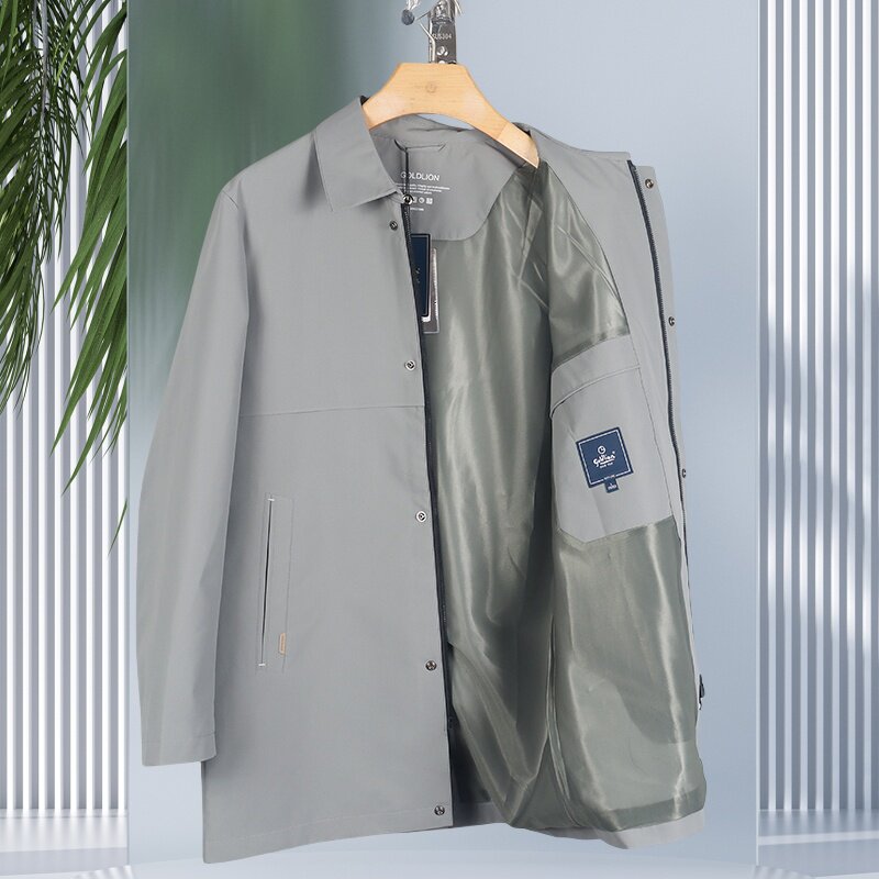 金利来商务男装夹克 春季翻领纯色中长款风衣外套MJF23111401-64