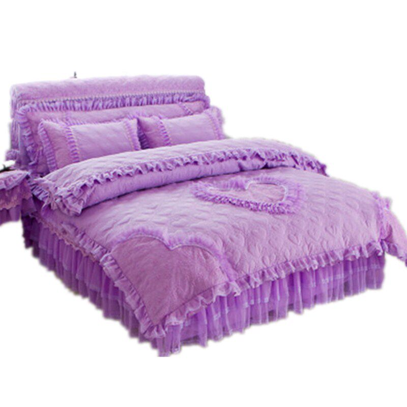 公主风床裙四件套韩式花边纯色加棉加厚床罩蕾丝床单被套婚庆粉色