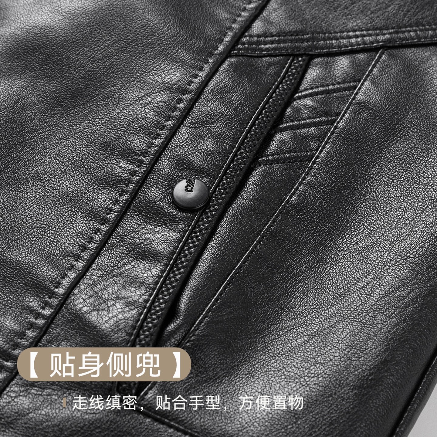 杉杉PU皮加绒加厚保暖机车服冬新款保暖翻领仿真皮夹克男皮衣外套